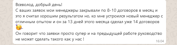 - Количество заявок ограничивается только рекламным бюджетом компании и городом;